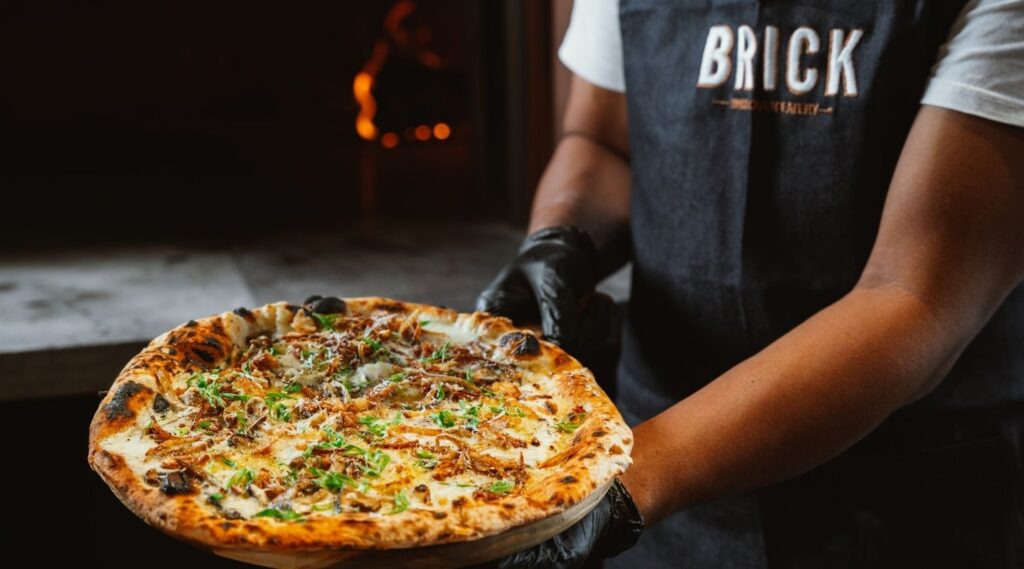 The menu is all cooked inside the wood-burning oven and has taken inspiration from all over the world. The high heat-burning organic oak offers a mild smokiness to the pizzas while creating a perfectly bubbled and slightly charred crust. Brick prides itself on using premium ingredients and creating eccentric pizzas with big flavors Expect to see pizzas like the Kimchi Zaa with Quail Eggs, Soy Braised Shitake Mushrooms, Avocado, and Buffalo Mozzarella.